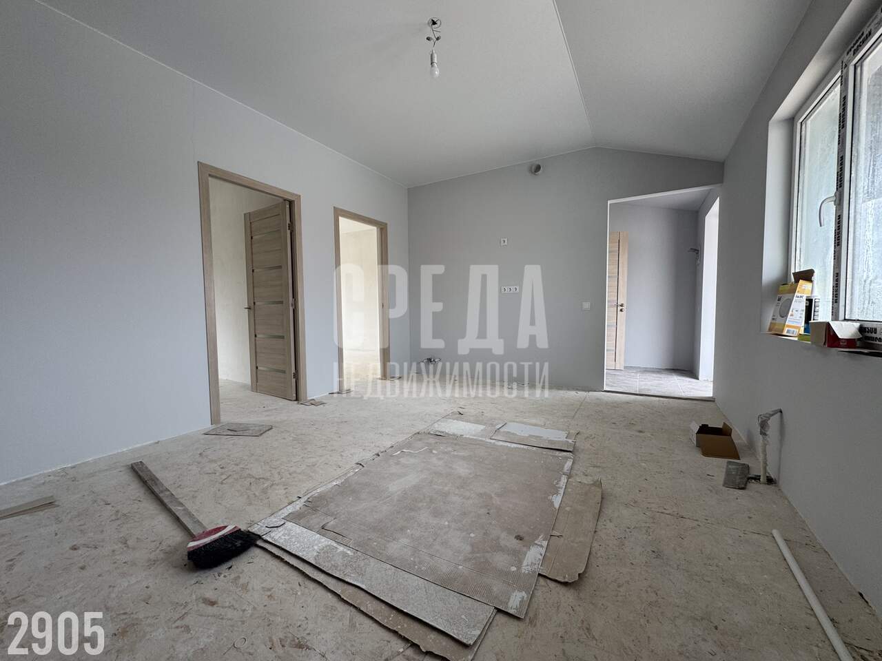квартира с прихожей, совмещенным санузлом, кухней гостиной и две раздельные спальни.
